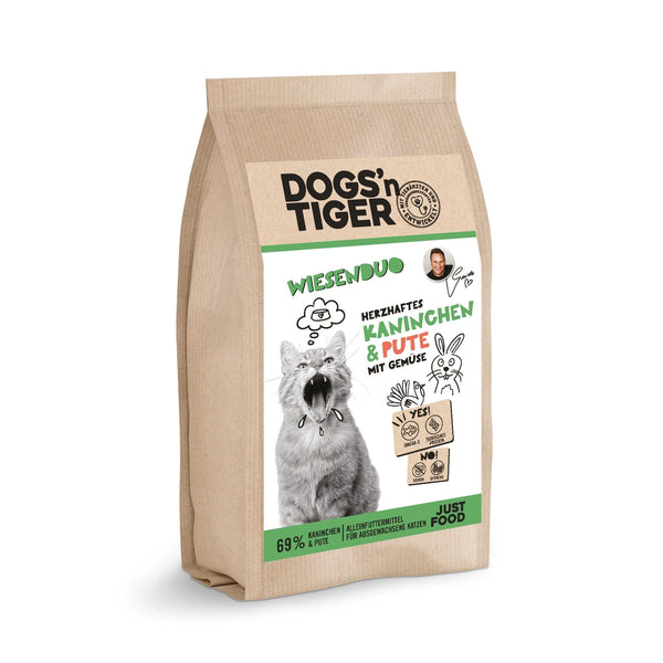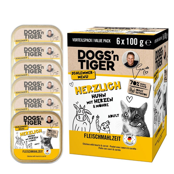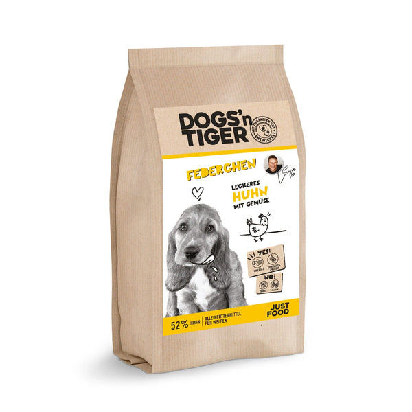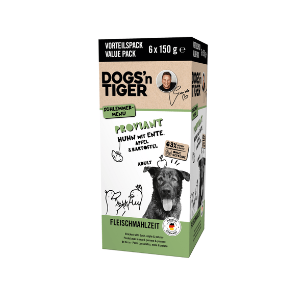 Bei Dogs’n Tiger glauben wir, dass echtes Essen glückliche Haustiere macht. Unsere Rezepte sind getreidefrei, tierärztlich genehmigt und aus reinen Zutaten – nichts Künstliches, niemals.