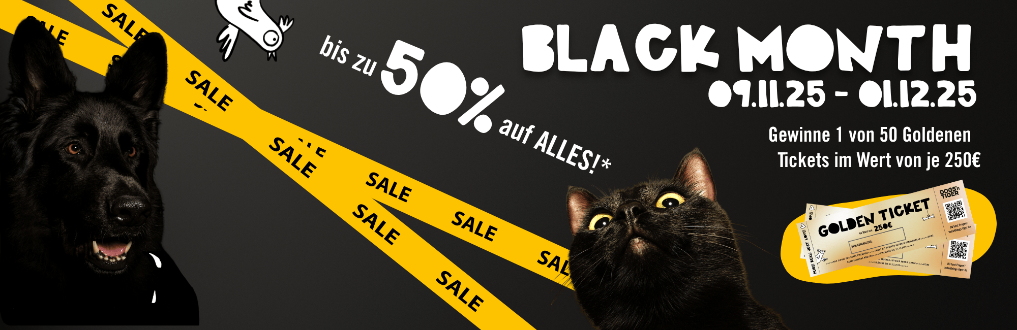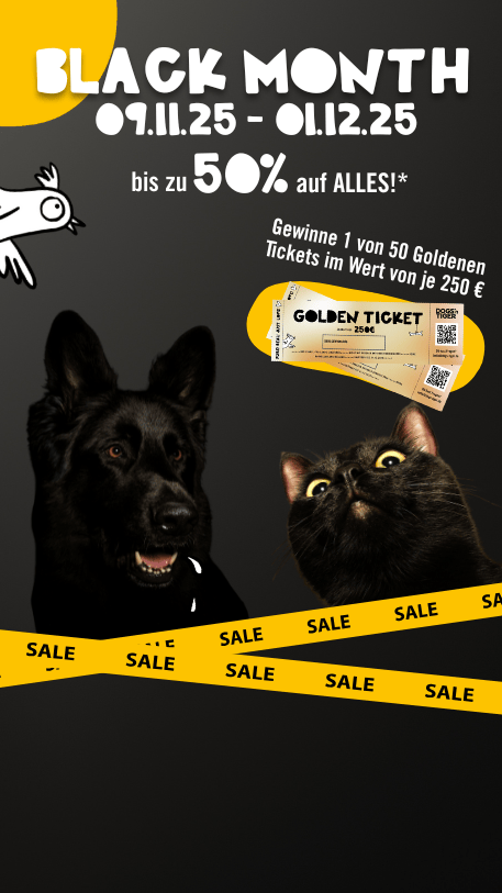 Ein Goldenes Ticket könnte sich in deinem Paket während des Black Month verstecken. 50 glückliche Gewinner erhalten je 250€ zum Ausgeben in unserem Shop.