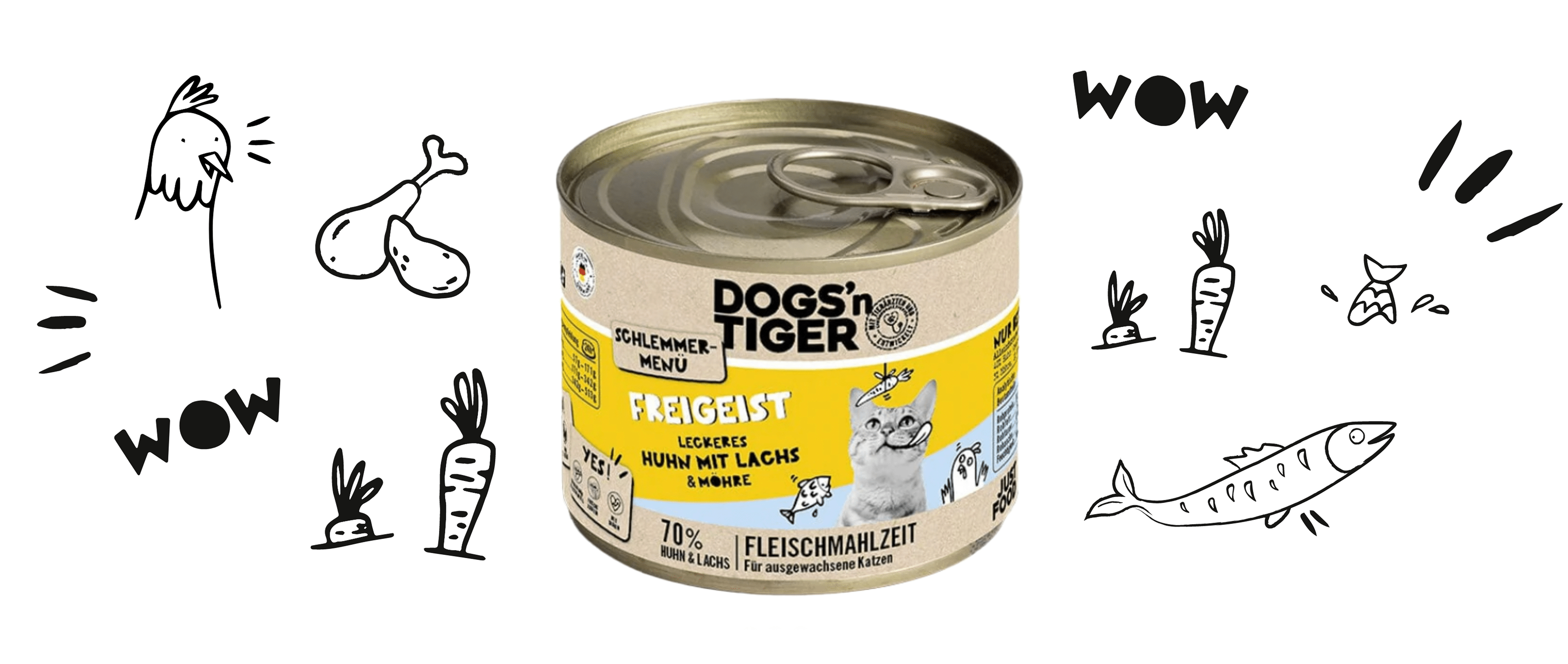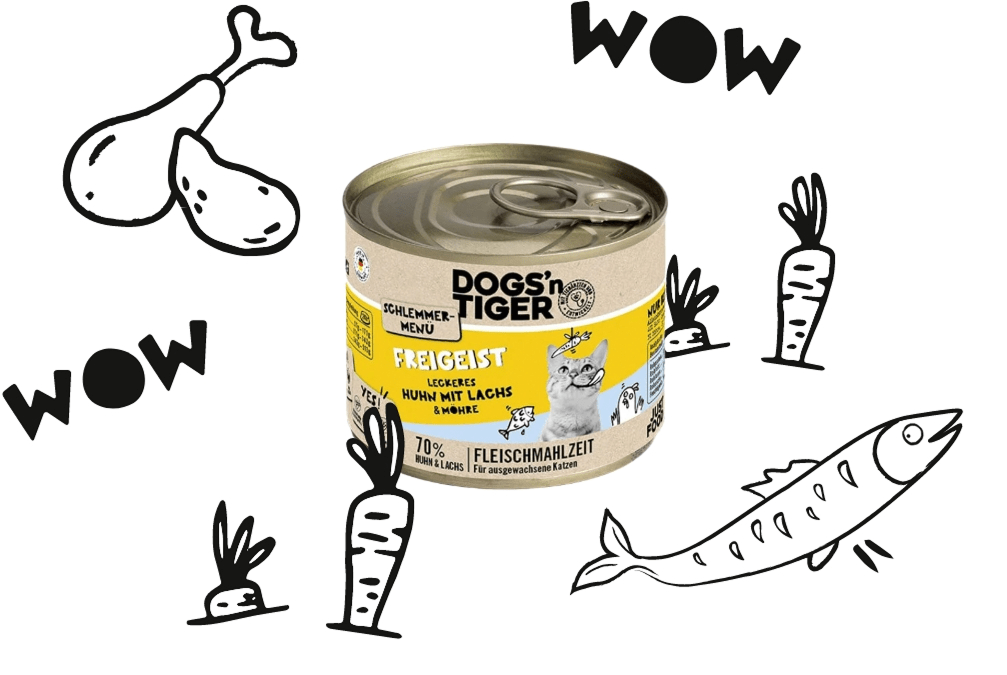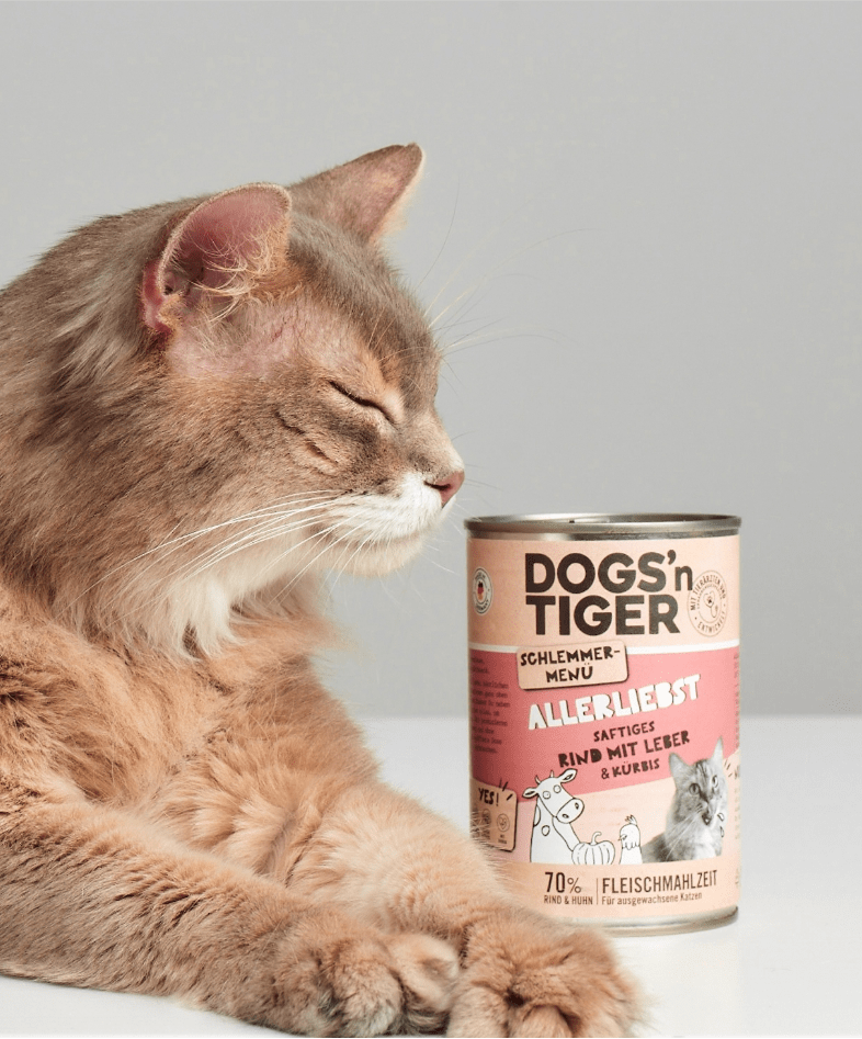 Das Futter von Dogs’n Tiger hebt sich durch den einzigartigen und gutriechenden Duft ab. Schon beim Öffnen der Dose merkst du sofort, dass nur natürliche Zutaten in Lebensmittelqualität verarbeitet werden. Keine künstlichen Aromen, kein typischer „Tierfutter-Geruch“, sondern ein angenehmer, frischer Duft, wie selbst gekocht.