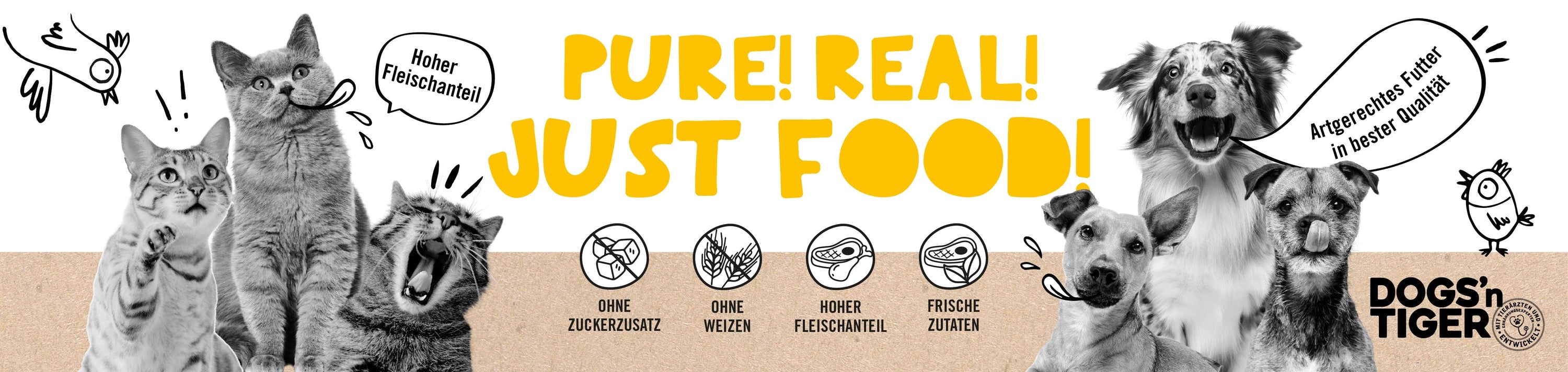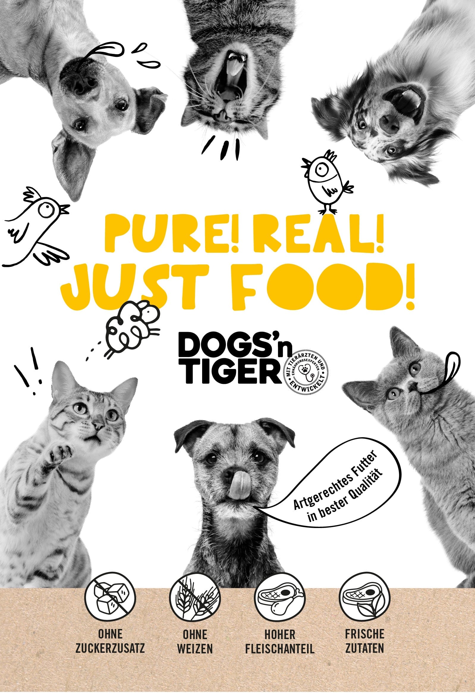 Das Dogs’n Tiger Futter Abo bringt Deiner Fellnase jeden Monat passgenau in einem von Dir gewählten Lieferintervall ihr liebstes Futter an die Haustür. Unser Futter bietet Deinem Vierbeiner besten Genuss – und das ganz ohne künstliche Aromen, dafür aber mit vielen Vitaminen und Mineralstoffen. Die getreide- und zuckerfreie Rezeptur liefert dank der hochwertigen Inhaltsstoffe hochwertige Antioxidantien. In den Napf gehört nämlich nur das, was Dein Vierbeiner wirklich braucht.
